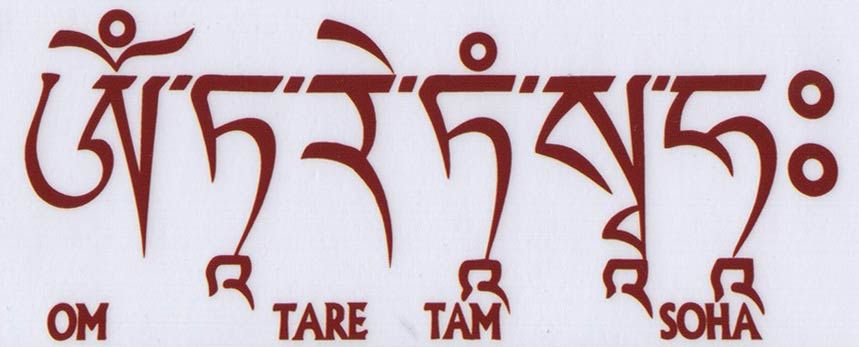 Tara is venerated by Hindus and Buddhists alike, and seems to predate Tantric Buddhism in India as a Hindu deity. Scholars note many links between her and ancient forms of the goddess Durga. Her Indian name, Tara, means “Star,” but it is also a form of the word that means “to ferry" or “to carry across,” which relates more closely to the literal meaning of her Tibetan name. […] Tara’s “seed syllable,” a single, untranslatable sound that expresses her entire essence, is Tam. The mantra Om Tare Tam Svaha (or, in Tibetan pronunciation, Soha) is thus know as her “heart song” and is sometimes associated with the more wrathful form of Red Tara, whose practice brings wisdom and awareness of our ultimate nature. […] A Tibetan nun [Jetsun Ani Rinpoche] with a voice straight from primordial space pierces our hearts with the mantra Om Tare Tam Svaha.
